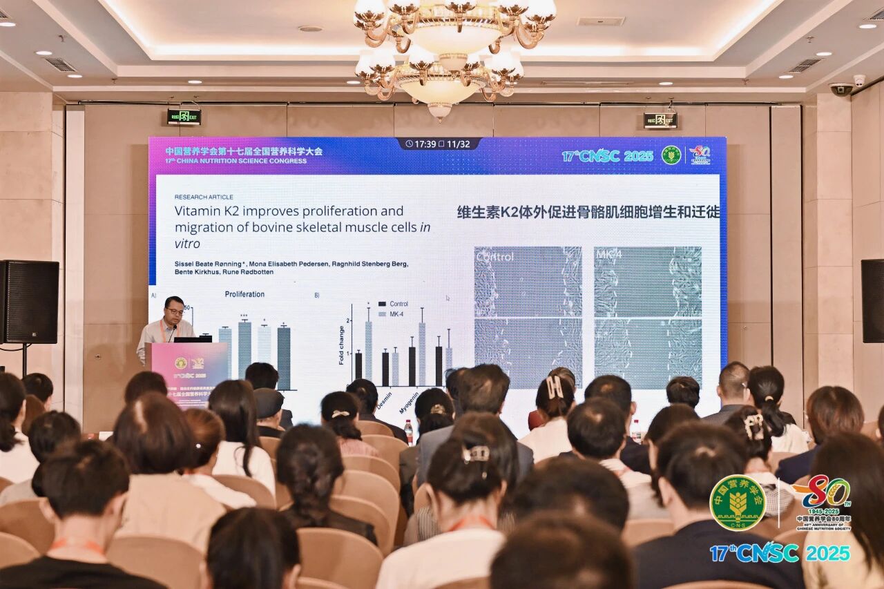 成都市第三人民医院血液科谭竞主任发表《维生素K2对夜间痉挛的防治作用》主题报告,维生素K2能够促进肌肉健康,通过激活特定受体和信号通路,加速肌肉再生和成熟,增强肌肉耐力和运动能力。同时,维生素K2在改善透析相关肌肉痉挛和老年夜间腿痉挛方面具有显著效果,能够降低痉挛的频率、严重程度和持续时间。目前美国市场已有用于改善肌肉痉挛的膳食补充剂,而国内市场尚存空白,这为国内企业产品创新提供了新方向。