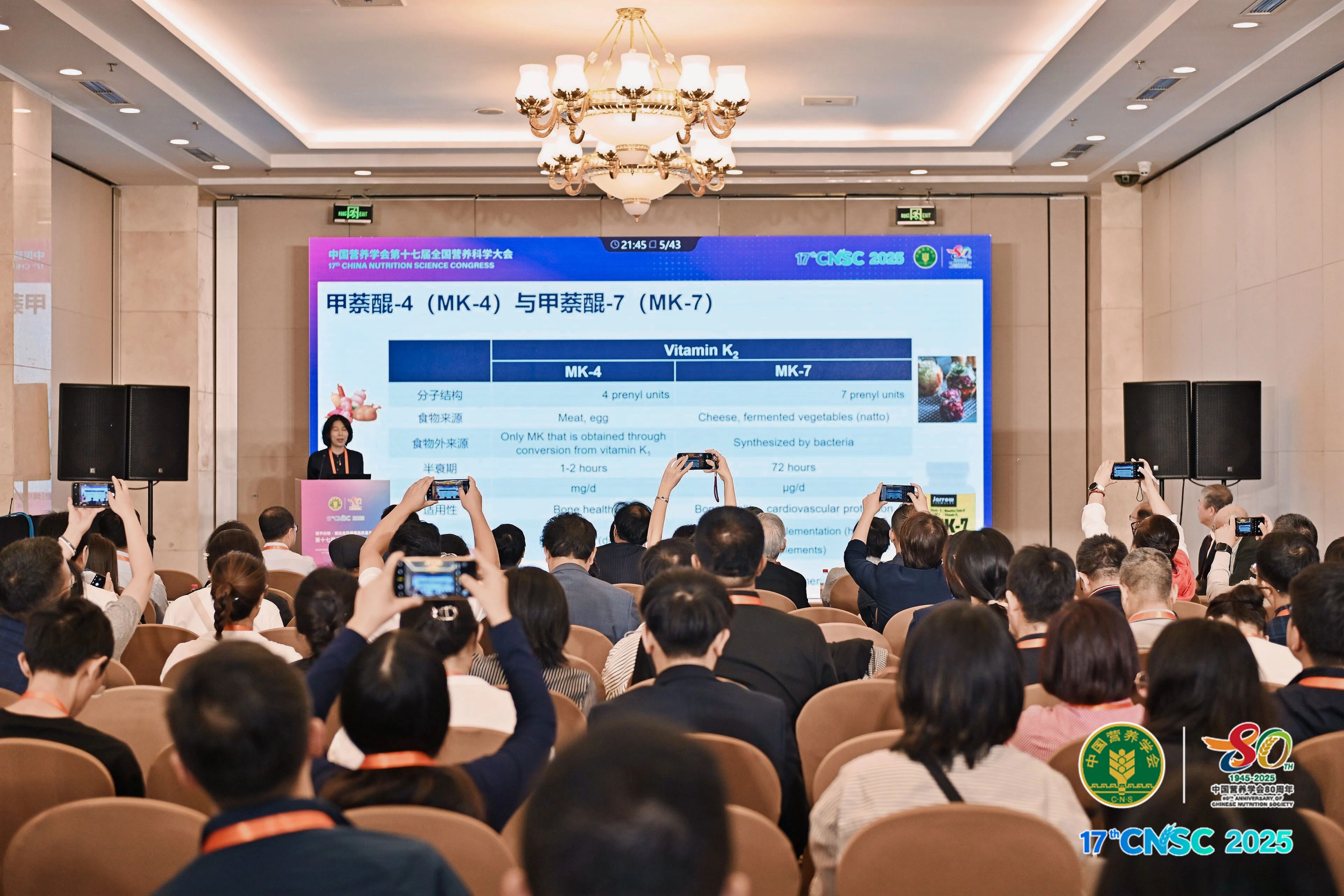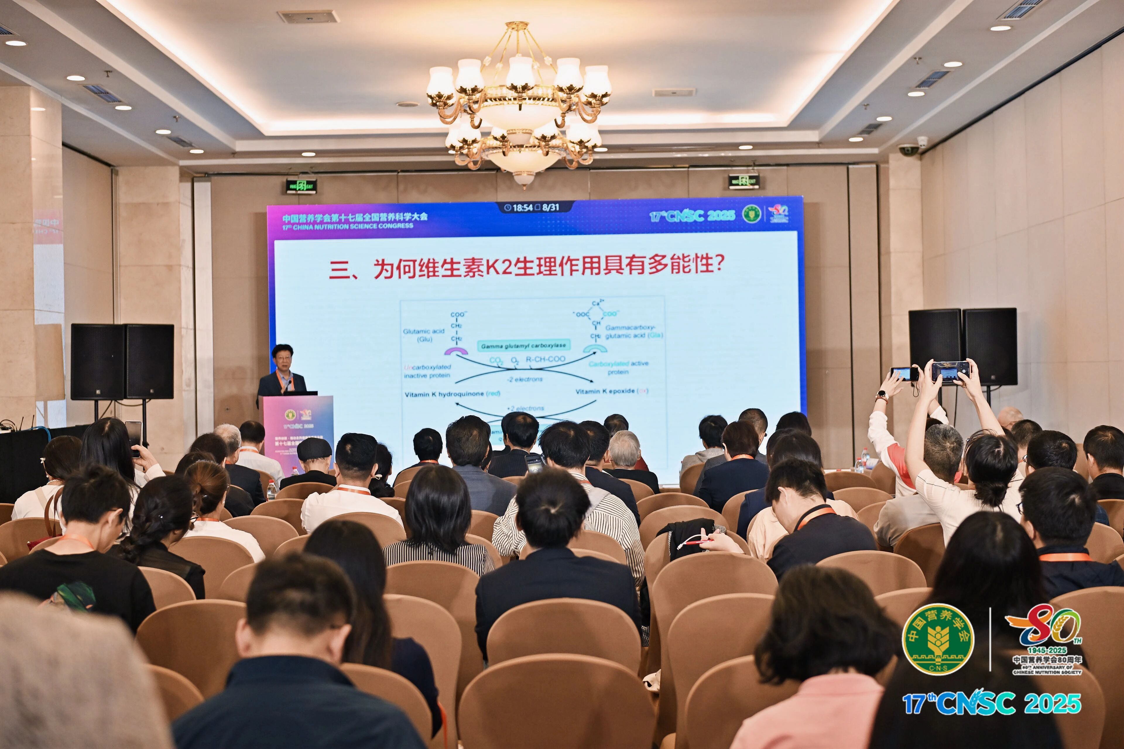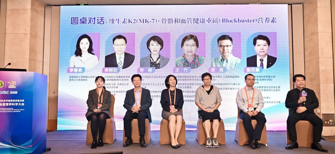 维生素K2领域权威专家、大连医科大学李树壮教授发表《维生素K家族:维生素K2健康作用及安全性》主题报告,阐述了维生素K2的多种生理作用,包括对骨骼和牙齿的益处、维护循环系统健康、防治糖尿病、对肾脏疾病的作用、抗癌、改善肌肉功能、对肝脏和肠道的保护作用等。此外,维生素K2通过嵌入细胞膜、减少电子泄漏、支持能量代谢的机制,在维护细胞膜和线粒体膜功能完整性方面也发挥着重要作用,为未来的研究提供了新的方向。