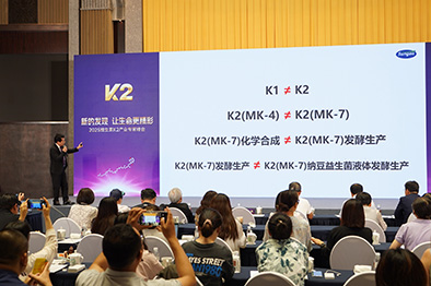 四川大学华西公共卫生学院营养与食品卫生学系教授/博士生导师、中国营养学会益生菌益生元与健康分会副主任委员何方教授在题为《维生素K2在发酵酸奶中的应用》的演讲中指出,维生素K2可能是肠道菌群健康促进作用的关键作用因子之一,然而高龄、营养失衡、疾病等多种因素易导致内源性维生素K2不足,因此,在调节肠道菌群的同时,适当地添加外源性维生素K2是保持健康的重要手段。鉴于维生素K2在酸奶等奶制品中具有良好的稳定性,其添加有望能更有效地促进乳钙从血液到骨骼的转移,维护骨骼健康。维生素K2也可以为乳制品行业进一步打开增量市场空间。
